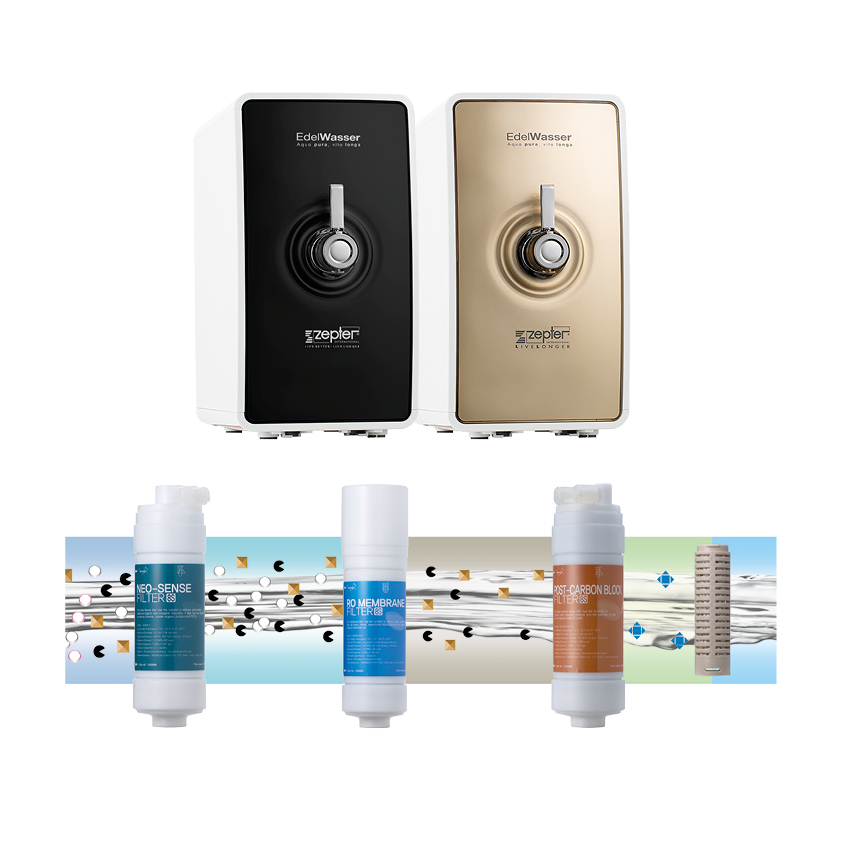 Voda z domácej čističky EdelWasser je čistá, bezpečná a chutná vďaka viacfázovému čisteniu, ktoré garantuje odstránenie všetkých nečistôt a kontaminantov. Každý zo 4 nezávislých filtrov má dôležitú úlohu pri zaistení zdravej vody s vynikajúcou chuťou.
