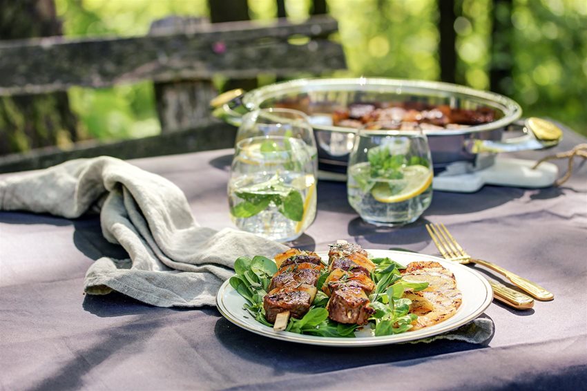 Príprava mäsa: všetky potrebné prísady na marinádu vložte do vhodnej nádoby VacSy, dobre ich premiešajte a pridajte na kocky nakrájané mäso. Znovu premiešajte, VacSy zatvorte a nechajte cez noc v chladničke. Druhý deň (aj keď mäso môžete pripraviť niekoľko dní vopred) mäso a červenú cibuľu opečte na grile niekoľko minút z každej strany.