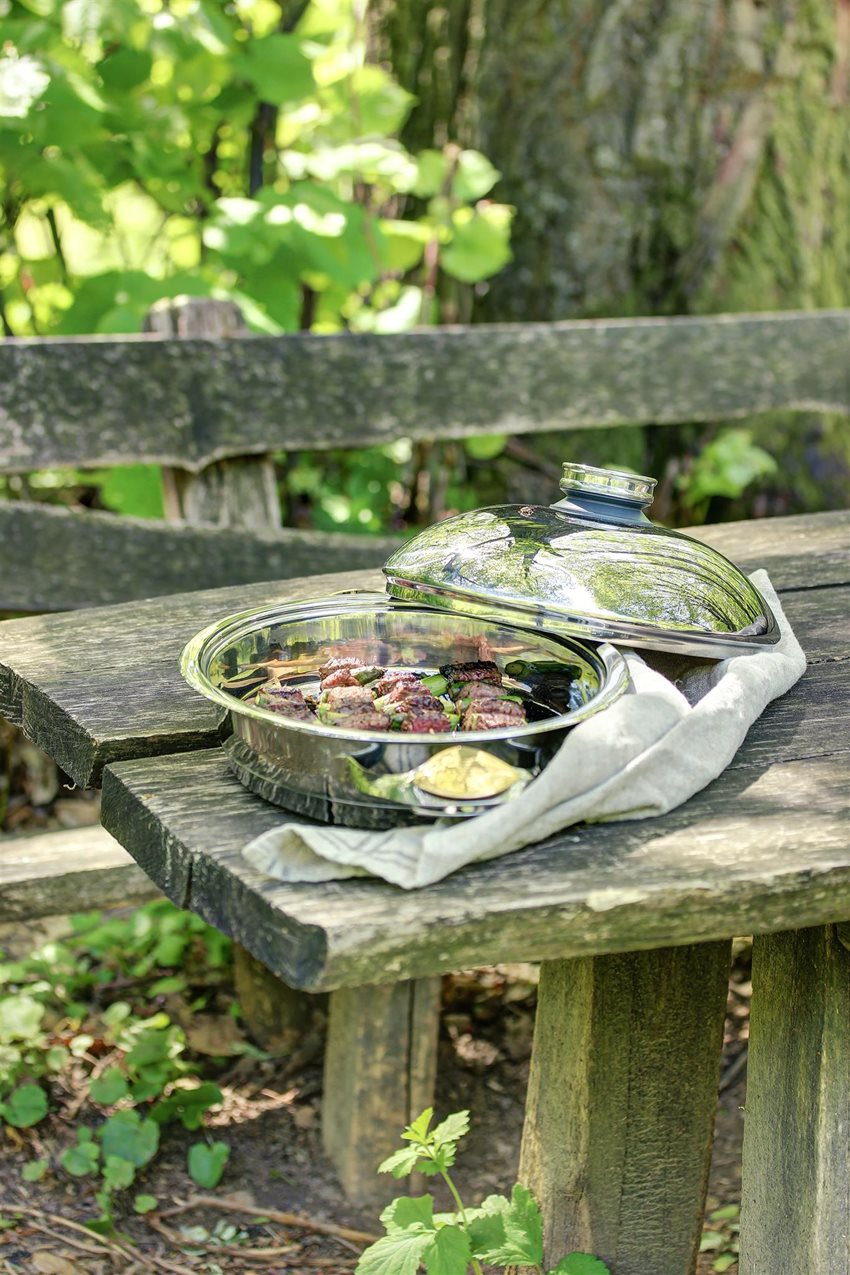 Ako vždy sme celé jedlo pripravili v nádobe Zepter Masterpiece Cookware. Vďaka nehrdzavejúcej chirurgickej oceli triedy 316L, z ktorej sú nádoby Zepter vyrobené, pokročilej nepriľnavej technológii URA a inovatívnemu dizajnu, riad Zepter Masterpiece zaisťuje maximálne zachovanie živín a chuti bez potreby pridania oleja, vody alebo tukov.
