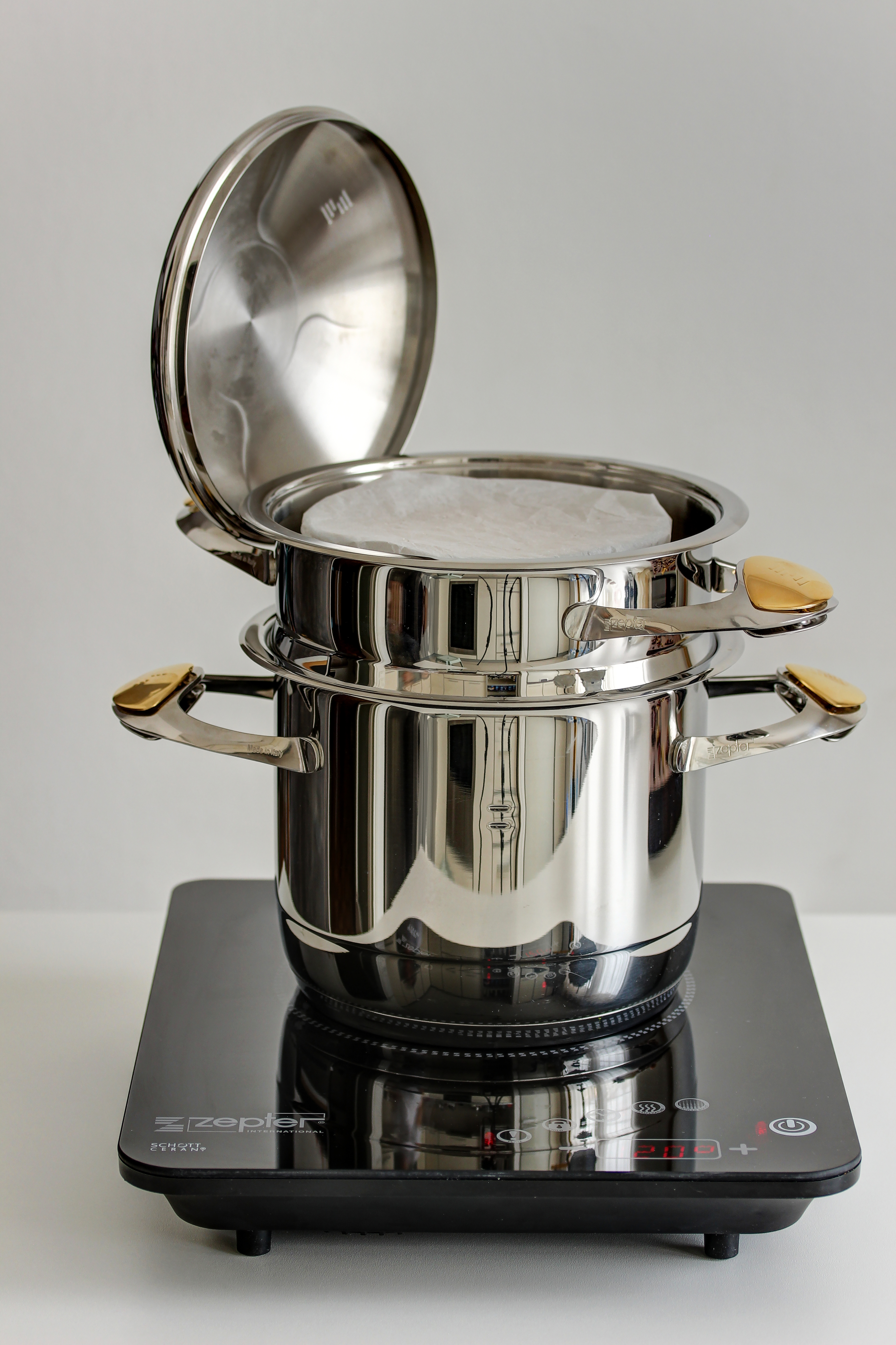 • Nalejte vodu do nádoby Zepter Masterpiece a zapnite indukčnú varnú dosku s nastavením teploty na 90 °C.