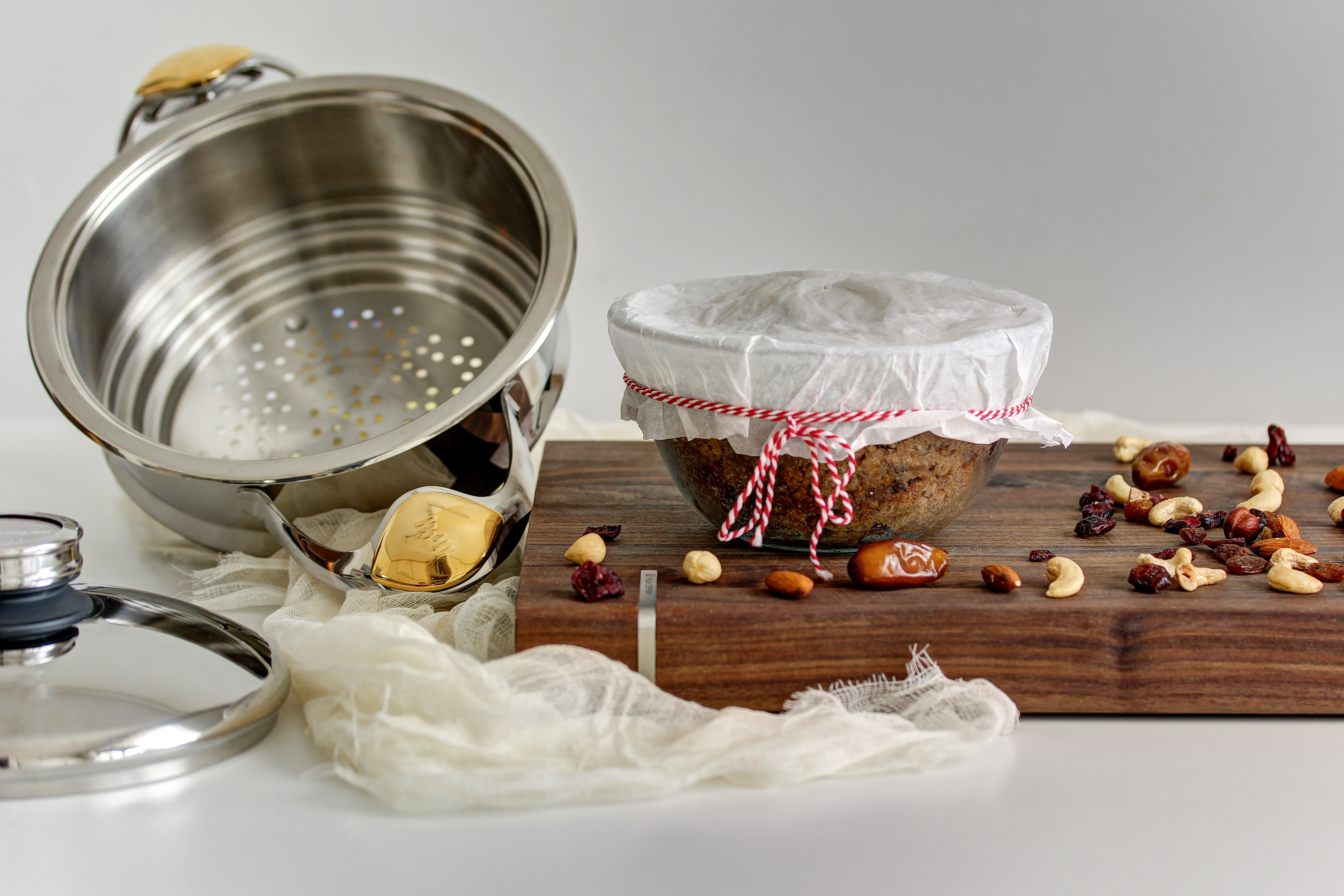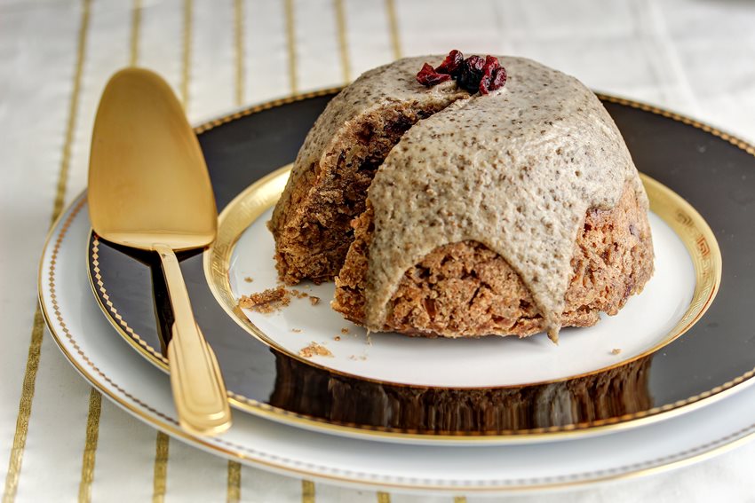 Náš vegánsky vianočný puding nevyžaduje pečenie. Bol pripravovaný v pyramídovom systéme Zepter, ktorý umožňuje varenie v pare a prípravu až štyroch pokrmov súčasne na jednom zdroji tepla, čo šetrí miesto, čas aj energiu!