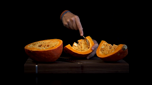 - Rozrežte tekvicu na štvrtiny a zbavte ju jadierok
