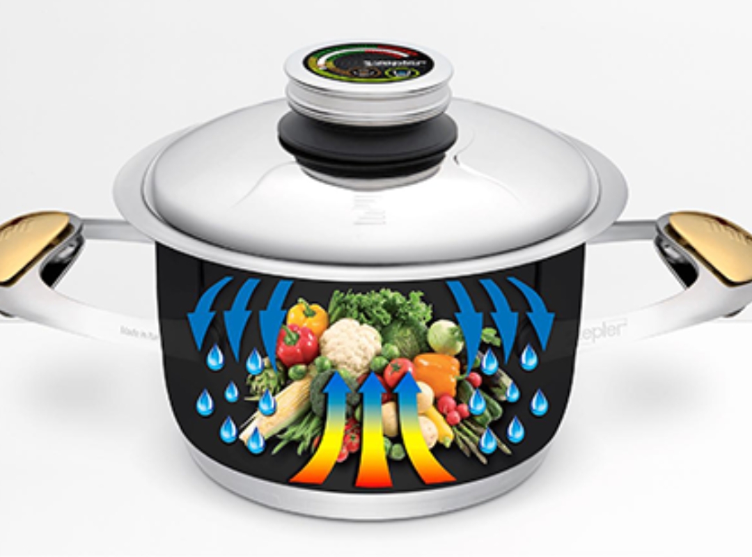 JEDINEČNÝ PROCES PRÍPRAVYV Zepter nádobách môžete pripravovať pokrmy pomocou tzv. uzavretého cyklu. Jedná sa o proces varenia bez pridania tuku, pri ktorom sa mení kvapalina obsiahnutá v surovinách na paru a stúpa hore, pri kontakte s chladnejším vekom kondenzuje a odkvapkáva na jedlo. Suroviny sa varia pomaly, vďaka čomu si uchovávajú svoje organoleptické vlastnosti, vôňu a intenzívnejšiu chuť. Teplotu môžete sledovať pomocou termokontroly na pokrievke a pretože uzavretý cyklus prebieha pod pokrievkou, nemusíte sa v priebehu varenia o pokrm starať.