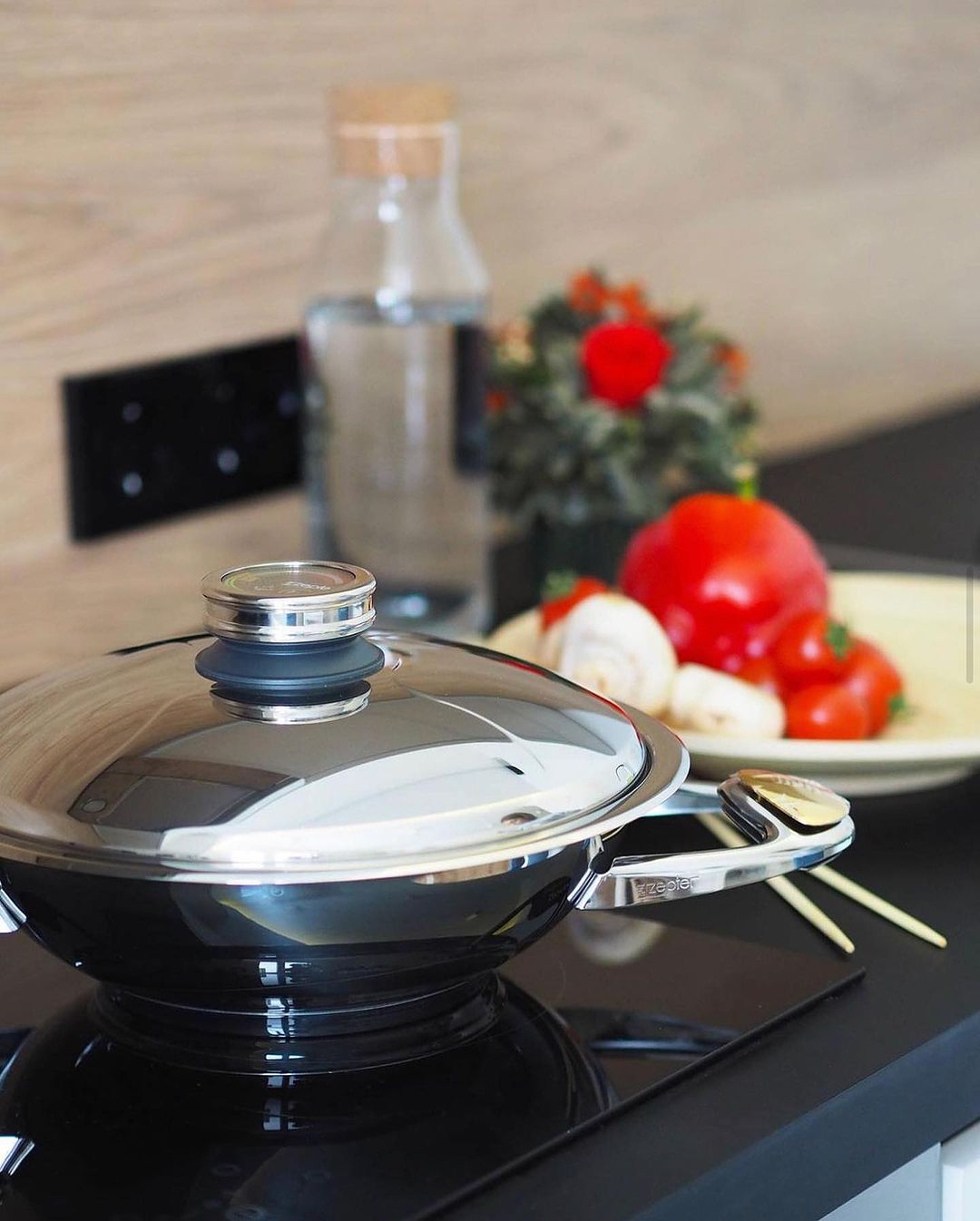 Technológia Zepter spočíva v použití tých najkvalitnejších materiálov, ktoré sú zárukou zdravej prípravy jedla, možnosťou varenia pri ideálnej teplote a uchovaní vlastností surovín, čím je podporené rozvinutie prirodzených chutí a vôní. Suroviny sa nepripaľujú, nelepia sa na dno nádoby a pri varení si uchovávajú ideálnu textúru aj farbu.Zepter Wok je jedinečný vďaka svojej všestrannej konštrukcii a designu. Je ideálny na prípravu dusených či vyprážaných jedál, ale aj na varenie v pare. Neexistuje lepší spôsob, ako premeniť pár jednoduchých prísad na chutné a zdravé jedlo s minimálnym obsahom tuku, s minimom stráveného času a s minimálnymi nákladmi na energie. Vo Woku Zepter môžete vyprážať pri nižších teplotách, než ako je zvykom v bežných panviciach, v ktorých sa olej zahrieva na vysoké teploty. Tým, že sa olej vo Woku Zepter neprepáli, sú jedlá oveľa ľahšie stráviteľné.