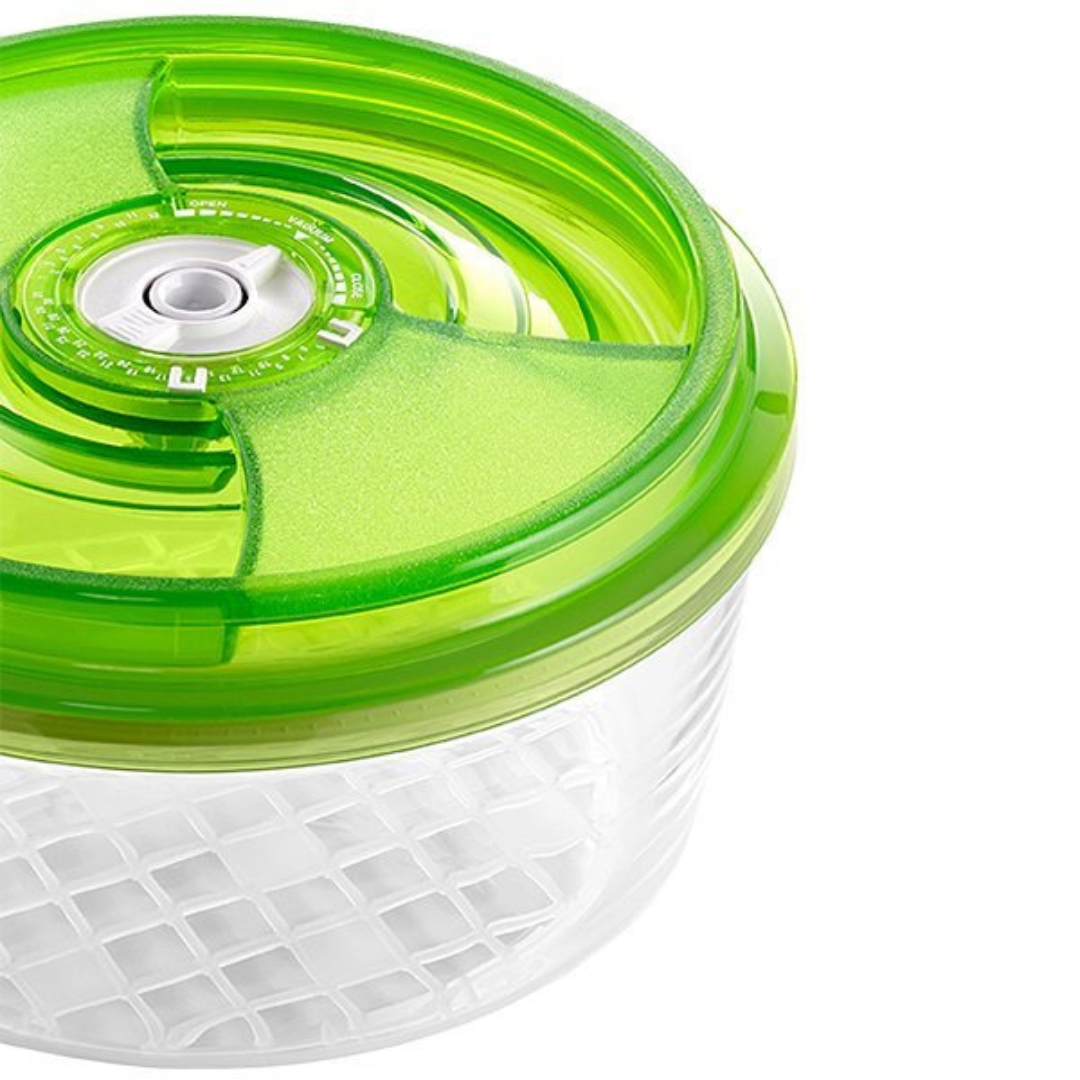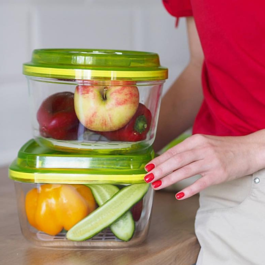Každá nádoba je navrhnutá na pohodlné a účinné skladovanie v chladničke alebo potravinovej skrini. Skladovaním potravín vo VacSy sa rýchlo zbavíte zápachu v chladničke, zamedzíte množeniu škodlivých organizmov. Na veku nádoby je praktický otočný kalendár s mesiacmi a dňami, prostredníctvom ktorého si zaznamenáte dátum balenia potravín či deň ich najneskoršej spotreby. Vďaka tomuto systému máte prehľad o dĺžke skladovania potravín a zamedzíte zbytočnému vyhadzovaniu potravín po lehote trvanlivosti.