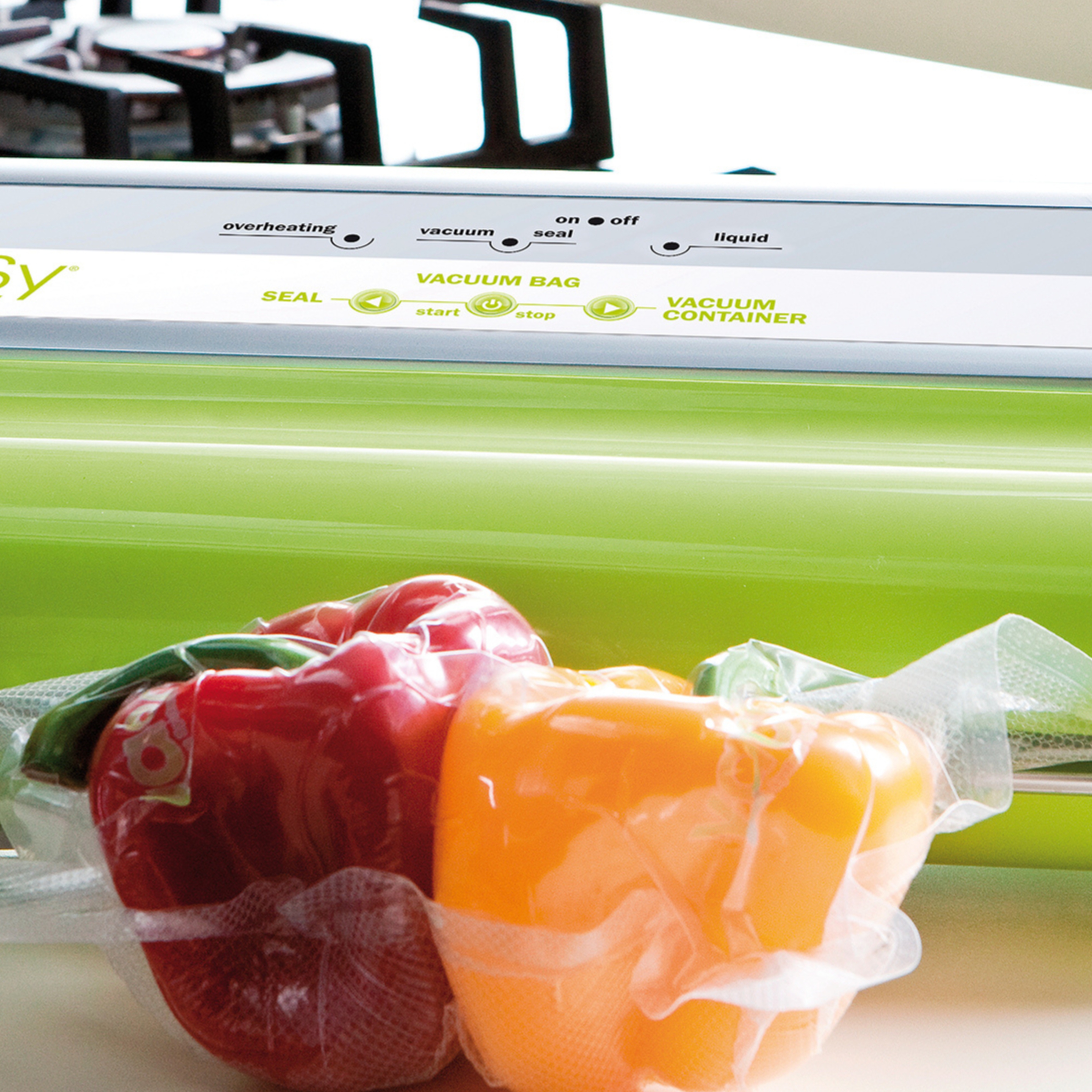 Vákuovací systém VacSy je nutnou súčasťou každej kuchyne. Jeho používaním šetríte čas, peniaze, zdravie, priestor aj planétu. Vákuum predlžuje čerstvosť jedál, spomaľuje proces ich kazenia a zdravo, účinne a bezpečne uchováva jedlá. Používajte VacSy zváračku a jedzte čerstvé jedlá plné chutí, ktoré sú bohaté na živiny. Zelenina, ovocie, mäso, ryby, hydina, syry, koláče a iné jedlá uskladnené v nádobách alebo sáčkoch VacSy vydržia po vysatí vzduchu až 5x dlhšie ako pri bežnom skladovaní.