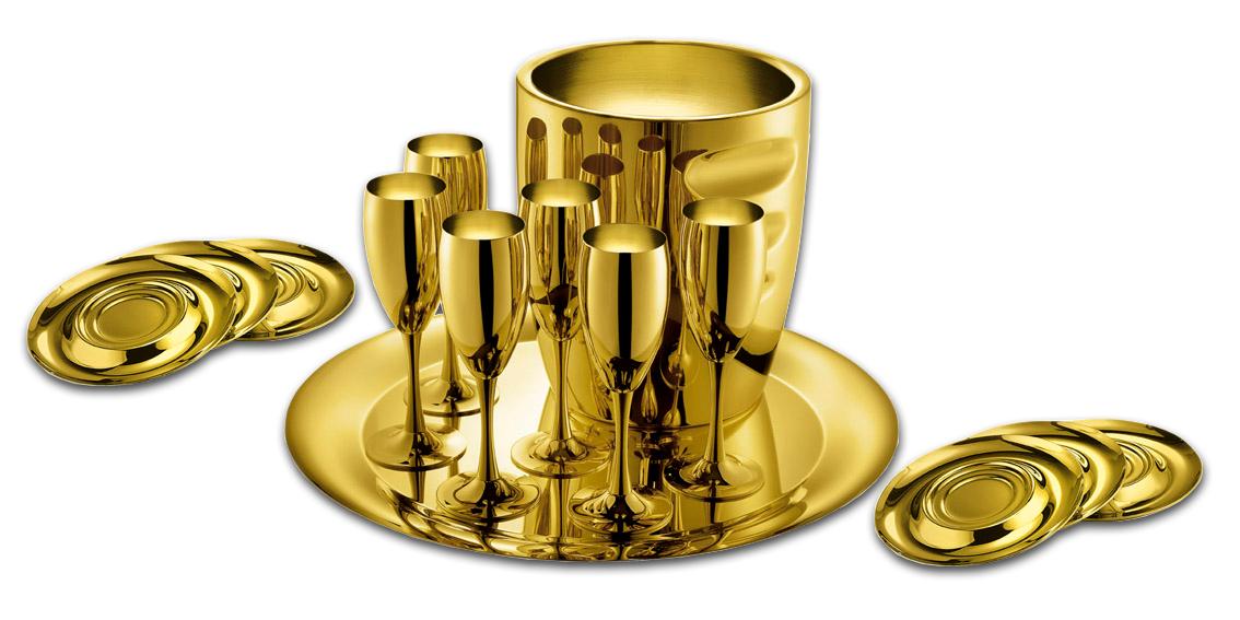 Čo je spoločným menovateľom našich exkluzívnych súprav? Sú vyrobené z ušľachtilej ocele (CrNi 18/10 - večná, nezničiteľná nehrdzavejúca oceľ); žiadna časť súpravy sa nemôže rozbiť ani poškodiť; (navyše poháre sú nepriehľadné, takže nikto okrem vás nebude vedieť, koľko v nich ešte je).