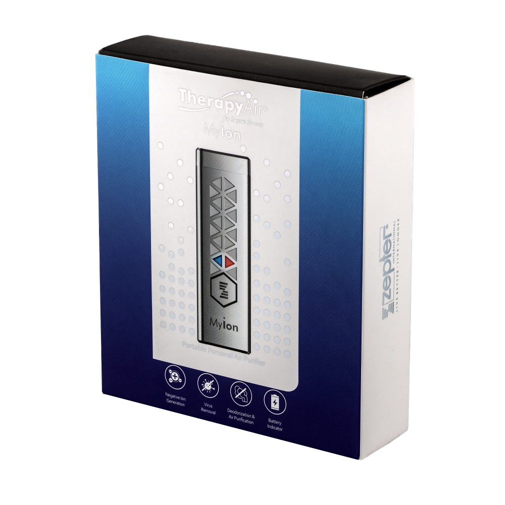 Prirodzene sa vytvárajú záporné ióny vo vzduchu uvoľňovaním a spájaním elektrónov s neutrálnymi časticami. Osobný ionizátor Myion vytvára záporné ióny pomocou rovnakého princípu: jeho záporná elektróda produkuje záporné napätie, výboj medzi dvoma elektródami tvorí elektrinu a molekuly medzi pólmi dostávajú záporný náboj. Záporné ióny pomáhajú tým, že sa zachytia na kladne nabité mikročastice vo vzduchu, tým zvýšia ich hmotnosť a spoločne padajú k zemi. Vo vzdialenosti do 30 cm od ionizátora vznikne ochranná bariéra. Vďaka tomuto princípu sa nachádza vo vašej dýchacej zóne čistý vzduch zbavený vírusov, baktérií, alergénov, vzdušných patogénov, prachu a častíc PM2,5.