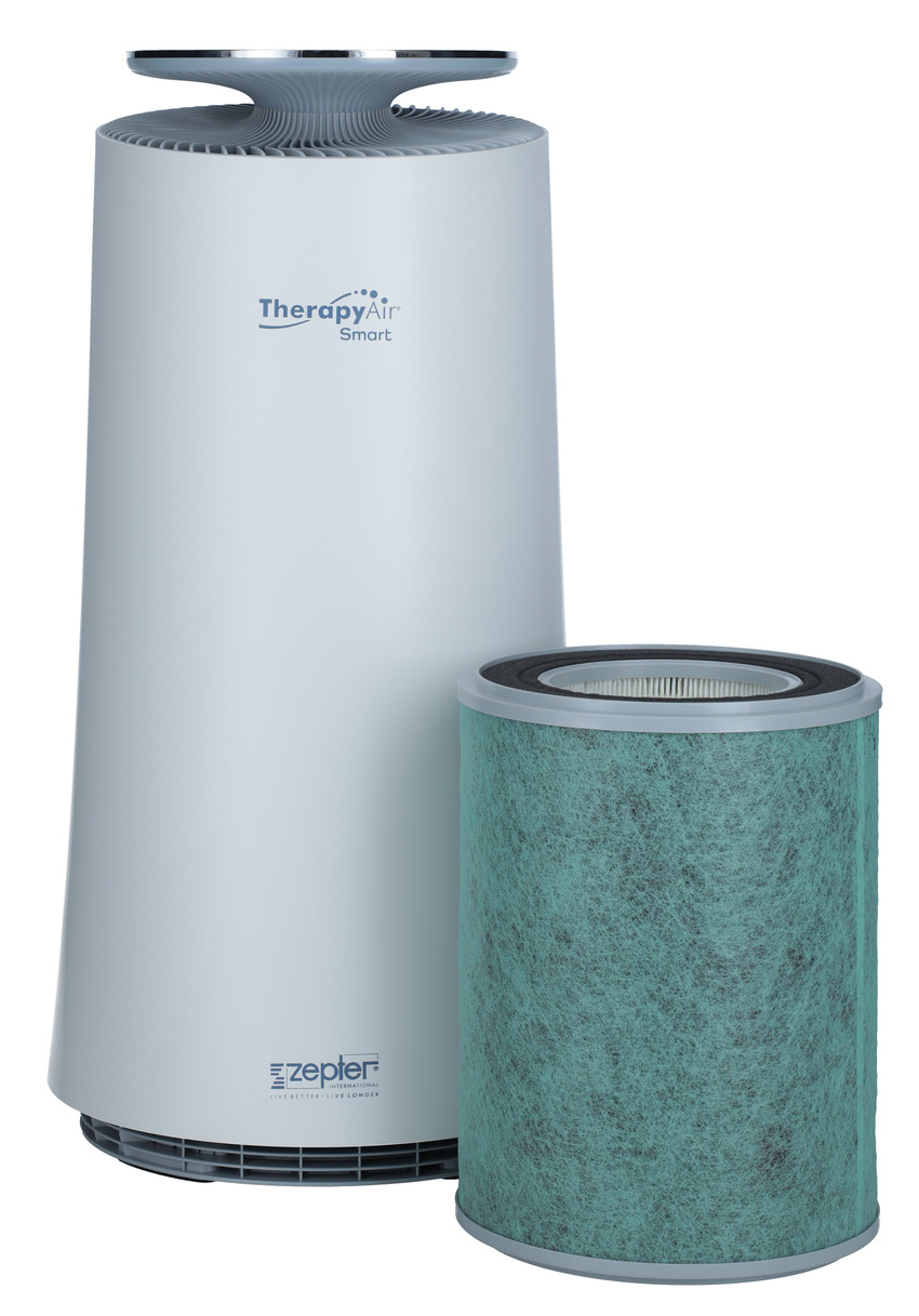 Kombinácia troch vrstiev filtra umožňuje úplne eliminovať škodlivé častice, ako sú baktérie, vírusy, vrátane SARS-CoV-2, alergény, prachové častice a iné patogény. Dômyselný filtračný systém Therapy Air Smart je navrhnutý na každodenné používanie aj tých najnáročnejších alergikov či astmatikov.