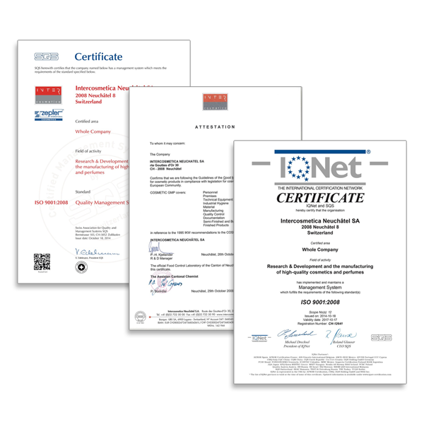 Prostredníctvom vlastných oddelení výskumu a vývoja a laboratórií pre testovanie pleti spoločnosť Intercosmetica neustále skúma a testuje čisté a účinné receptúry pre novú generáciu kozmetiky. Spoločnosť Intercosmetica má najvyššiu úroveň systémov riadenia kvality (certifikát ISO 9001:2015) a zaručuje dokonalú kontrolu svojich kozmetických radov. Počnúc vývojom inteligentných receptúr až po výrobu finálneho produktu spoločnosť Intercosmetica plne podporuje projekty svojich klientov.